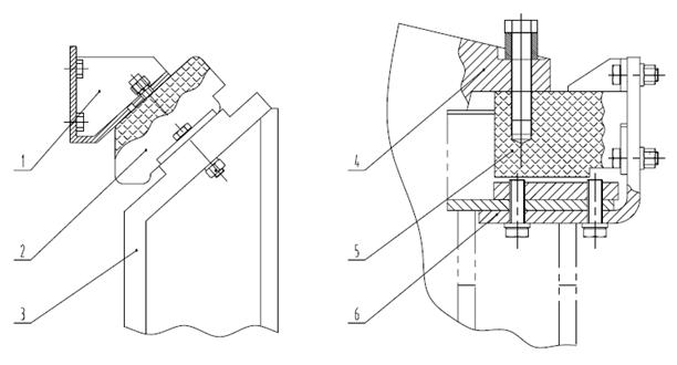 1、4-發(fā)動(dòng)機(jī)支腿 2、5-減震墊 3、6-固定座