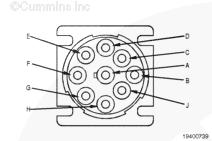 測(cè)量康明斯qsb5.9發(fā)動(dòng)機(jī) SAE J1939 數(shù)據(jù)通信接口(屏蔽)觸針(如果可用)與接頭上的所有其他觸針之間的電阻,每次測(cè)量一個(gè)觸針。萬(wàn)用表必須顯示開(kāi)路(100K 歐姆或更大)。