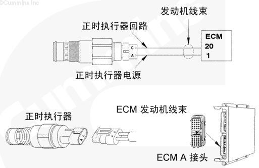 正時執(zhí)行器電路圖向正時執(zhí)行器提供電流。CM500 ECM 向正時執(zhí)行器指派變動的電流量來控制噴油器正時壓力量。