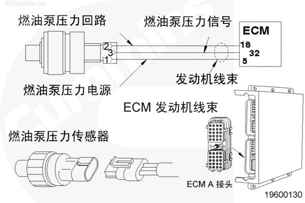 燃油泵壓力傳感器電路圖通過康明斯QSK78發(fā)動機線束向 CM500 ECM 提供燃油泵壓力傳感器信號。CM500 ECM 利用燃油泵壓力傳感器信號監(jiān)測從控制閥體輸送到噴油器正時油腔的燃油泵壓力。