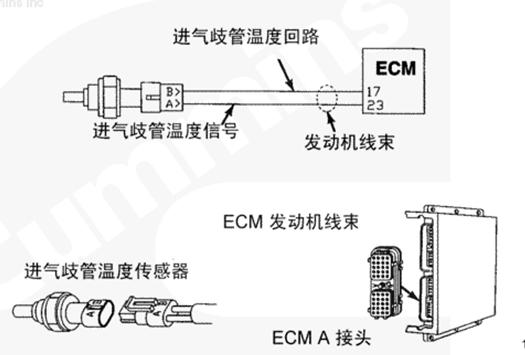 正時執(zhí)行器電路圖開路,或者電源觸針對地短路,或者回路觸針對 CM500 ECM A 接頭上的蓄電池電壓短路。這不是 CENSE™ 系統(tǒng) ECM。 |
