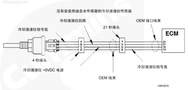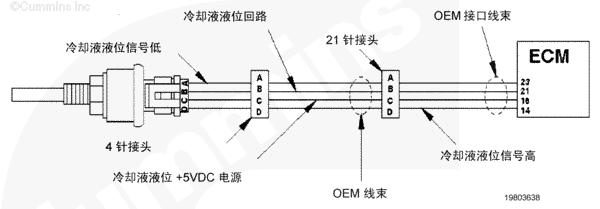 冷卻液液位傳感器監(jiān)測冷卻系統(tǒng)中的冷卻液液位,并將信息通過 OEM 線束傳送至 CM500 康明斯QSK78電子控制模塊 (ECM)。