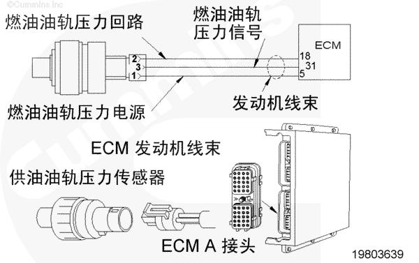 康明斯QSK78發(fā)動機燃油油軌壓力傳感器電路圖 |