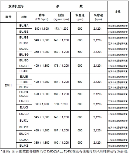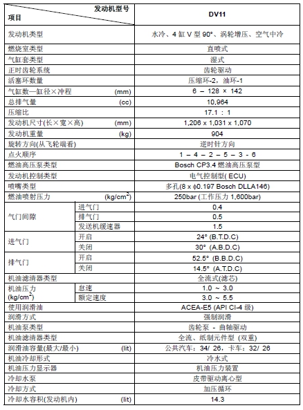 韓國斗山大宇發動機規格詳細的技術參數(Engine Specifications)