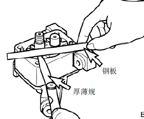 (2) 使用厚薄規測量機油泵主動齒輪與從動齒輪間隙。如果測量值超過極限請更換。