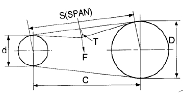 如果在皮帶切線和皮帶輪當中施加偏差力“F”,皮帶拉緊調整適度。