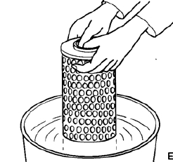 - 再將濾芯在微溫的洗滌劑溶液中浸泡10 分鐘,再涮約5 分鐘。