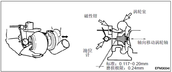 (3) 如果軸向間隙和徑向間隙磨損嚴重,更換或修理渦輪增壓器。
