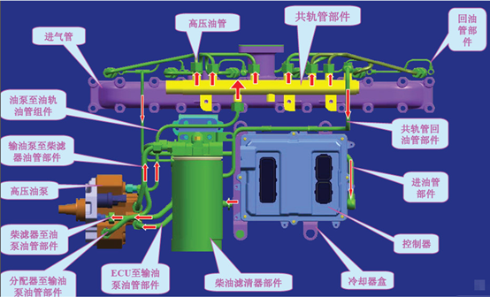 電控柴油發動機進氣側燃油管路布置