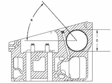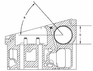 90.985±0.020mm(3.5821±0.0008in)。S--襯套接合處的方向是高于水平20±5度。---新缸蓋的厚度為