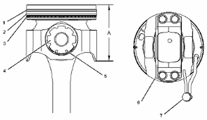 將活塞銷插入活塞體組件和連桿(6)中之前,先用清潔的發(fā)動機機油潤滑活塞銷。 |