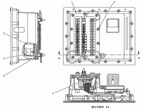 卡特彼勒柴油發(fā)電機組繼電器模塊的更換 GSC+后視圖 (1) 繼電器模塊 (2) 螺釘 (3) 膠帶 (4) 干燥劑包 (5) O 形密封圈 (6) 電纜接頭 |
