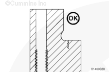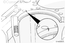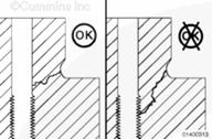 不必機加工缸體以去除可接受的裂紋。如果在初始檢查中發現不可接受的裂紋,則必須機加工沉孔臺階。與 Cummins® 特約維修站聯系。