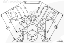 兩個康明斯發動機排的缸體高度之差不能超過 0.13 mm [0.005 in]。