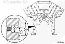 K38 和 K50 康明斯發動機的缸套突出量進行了改動。缸套突出量必須在 0.152 mm 至 0.203 mm [0.006 in 至 0.008 in] 范圍內。為獲得正確的突出量,現在的缸體上的沉孔深度已經改變。