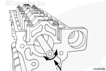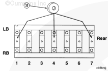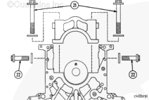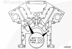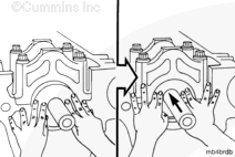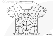 K38 康明斯發動機上的主軸承蓋編號到“7”,而 K50 康明斯發動機上則編號到“9”。將每個蓋安裝到正確位置中?!?”號蓋安裝在缸體前部。蓋中的軸承定位舌槽必須位于缸體中的槽的同一側。 |