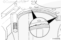 缸體上如果有從冷卻液通道一直向下延伸到沉孔臺階的垂直裂紋,則缸體不可維修。