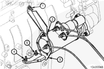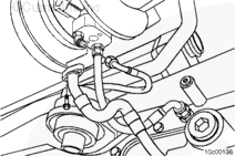 擰緊管接頭時,可以讓渦輪增壓器執行器冷卻液回流軟管與渦輪增壓器冷卻液回流軟管接觸。擰緊管接頭時,一定要將軟管分開保持距離。如果軟管間沒有間隙,可能會造成軟管故障。