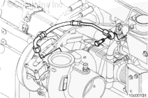 將渦輪增壓器執行器冷卻液供應管和回流管接頭安裝到電子執行器內。參考第 10 節中的步驟 010-041。