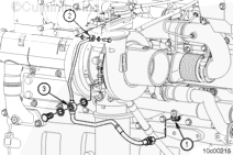 檢查發動機和渦輪增壓器上的冷卻液接頭的端面,確保 O 形圈安裝到位并且沒有損壞。損壞或缺少O形圈會導致冷卻液泄漏。將渦輪增壓器冷卻液回流管安裝到渦輪增壓器頂部和節溫器殼體上。擰緊管接頭。擰緊管子時,用另一把扳手夾住冷卻液管聯接處。