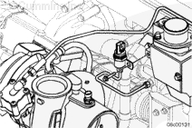 在節溫器殼體上安裝渦輪增壓器冷卻液回流軟管。緊固空心管接頭。