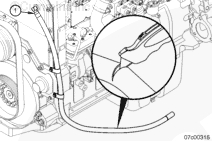 將機油供應軟管連接到位于機油濾清器座上的機油供應管接頭上。擰緊機油供應軟管。
