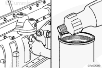 在向發動機中加注機油之前,應先加注并安裝機油濾清器。參考步驟 007-013。
