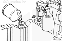 識別正確的濾清器。對于汽車用發動機,使用《Signature™ 和 ISX 操作和維護保養手冊》(公告號 3666251)。 參考第 V 節中的步驟 018-004。