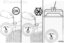 加注冷卻系統時,康明斯公司推薦使用優質水和完全按配比的防凍液以 50/50 比例混合后的, 溶液,或用完全按配比的冷卻液。完全按配比的防凍液或冷卻液必須符合 TMC RP329 或 TMC RP330 技術規范。