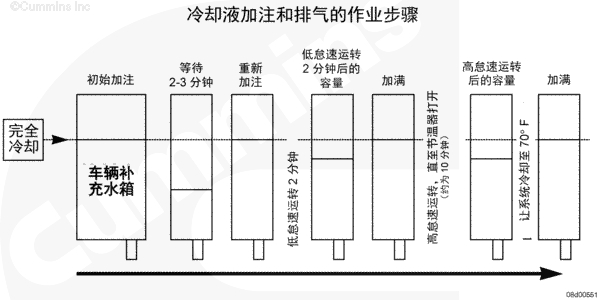 注: 請參考 OEM 維修手冊中有關冷卻液加注的特殊要求。這些特殊說明也可能標在冷卻系統檢修點或車輛上的加注門附近。