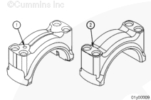 斷面分裂式連桿 (1) 可以在同一臺(tái)發(fā)動(dòng)機(jī)中與鋸切式連桿 (2) 混用。關(guān)鍵的問(wèn)題是了解正在維修的連桿是哪種型式,以進(jìn)行正確的軸承軸瓦選擇。