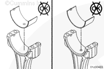 連桿軸承必須與連桿的型式相匹配。鉆孔連桿必須使用鉆孔的連桿軸承。非鉆孔連桿必須使用非鉆孔連桿軸承。不匹配會(huì)造成發(fā)動(dòng)機(jī)損壞。另外,斷面分裂式連桿必須配備斷面分裂式連桿軸承,而鋸切式連桿必須配別鋸切式連桿軸承。不匹配可能造成發(fā)動(dòng)機(jī)嚴(yán)重受損。