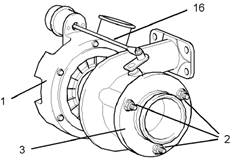 1.從渦輪增壓器(1)的所有孔上拆下全部塑料螺塞。清潔排氣歧管和渦輪增壓器的配合面。清潔渦輪增壓器與供油管組件(6)及渦輪增壓器與回油管組件(9)的配合面。