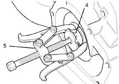 3.拆下將水泵(4)緊固至前殼體(1)上的調(diào)整螺釘(3)。