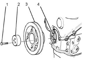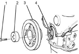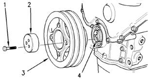 2.從曲軸(4)上拆下皮帶輪(3)。