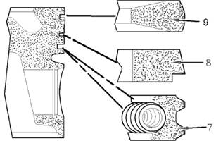 b.將錐形表面的中間活塞環(8)安裝到活塞的第二個槽中。壓印標記“TOP”必須朝向活塞頂部。