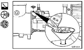 注:對于帶有渦輪增壓器的發動機,從增壓器上卸下機油進油管,加2~3盎司(50~60毫升)干凈的潤滑油潤滑軸承。再裝回機油輸油管。