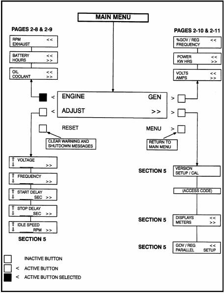 康明斯柴油發(fā)電機組PCC3100發(fā)電機組主功能(MAINMENU)