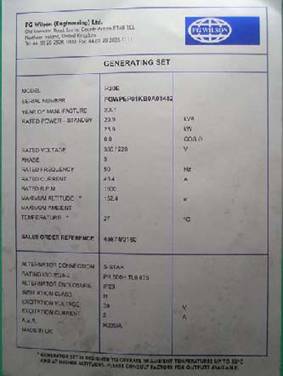 每一臺柴油發(fā)電機組都有一個銘牌,它被粘貼在主交流發(fā)電機的外殼上或機組控制屏的背后。銘牌上的資料用于鑒別該機組的型號、編號及簡單技術特性,如額定轉(zhuǎn)速、額定電壓、電流和額定頻率、額定功率、額定功率因數(shù)及機組的標準測試條件如環(huán)境溫度和海拔高度等。為了向用戶提供更詳細參考,一些資料還會重復在隨本手冊附送的技術數(shù)據(jù)表內(nèi)。 |