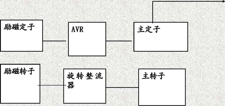 自動穩(wěn)壓器(AVR)可使主發(fā)電機從空載運行到滿載運行時緊密保持較穩(wěn)定的電壓。主機定子通過AVR為勵磁機磁場提供電力,并能夠自動調(diào)節(jié)勵磁機磁場的電流。AVR向來自于主機定子繞組的電壓感應信號作出反饋,通過控制低功率的勵磁機磁場,調(diào)節(jié)勵磁機電樞的整流輸出功率,從而達到控制主機磁場的目的。主定子所輸出的三相四線制交流電之電壓的大小與主轉(zhuǎn)子繞組的電流大小成正比關系。 |