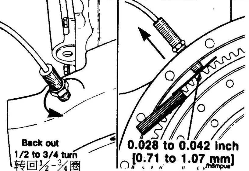 n轉速傳感器安裝 –傳感器與齒頂間隙0.71-1.07mm –傳感器旋入頂到齒頂后退回0.50-0.75圈
