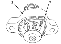 4如果安裝原來的水溫調(diào)節(jié)器,將一個新O形密封圈(3)安置到水溫調(diào)節(jié)器殼體(2)的凹槽中。提供的新水溫調(diào)節(jié)器殼體配有一個新O形密封圈。