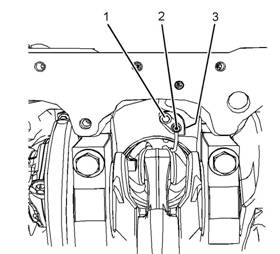 b.拆下搖臂軸和推桿。有關正確步驟,請參閱《拆解和組裝》,“搖臂軸和推桿-拆卸”。