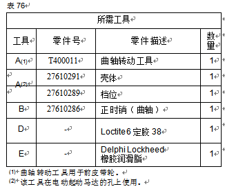 注:安裝工具(B)時不要使用過大的力量。在修理過程中不要使用工具(B)固定曲軸。