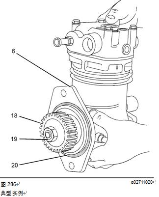 3如果發動機在空氣壓縮機后部配備一個液壓泵,卸下該液壓泵。有關正確的步驟,請參閱OEM信息。