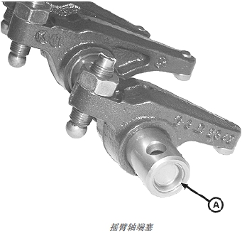 1. 在端塞(A) 的外緣涂 LOCTITE 277 高強度螺紋緊固劑,并裝入搖臂軸兩端固定。