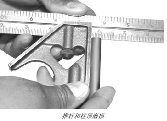 2. 測量推桿外徑 (B)。如果推桿外徑小于技術規格,應安裝新推桿。