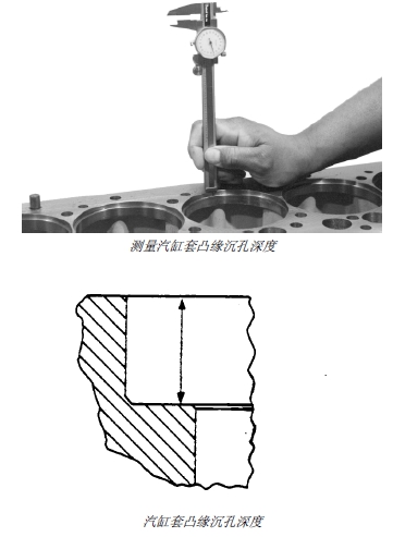 測量汽缸體內(nèi)汽缸套凸緣沉孔深度并與下列技術(shù)規(guī)格進行比較。如果沉孔深度不符合技術(shù)規(guī)格要求,可安裝汽缸套墊片。