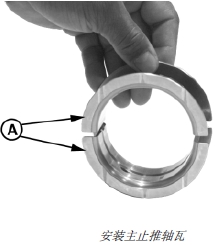 2. 將主止推軸瓦 (B) 裝在汽缸體內帶加強筋的止推軸瓦座上。