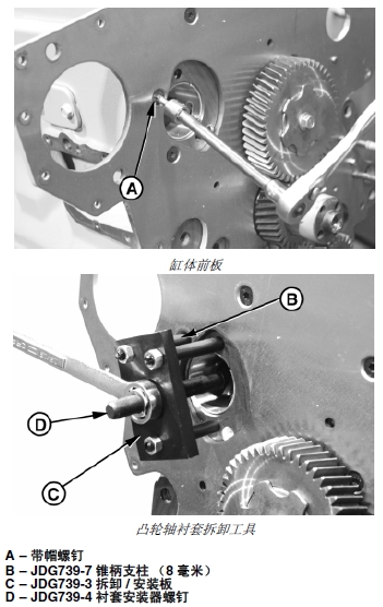 約翰迪爾強鹿柴油發動機前板的凸輪軸襯套拆卸和安裝